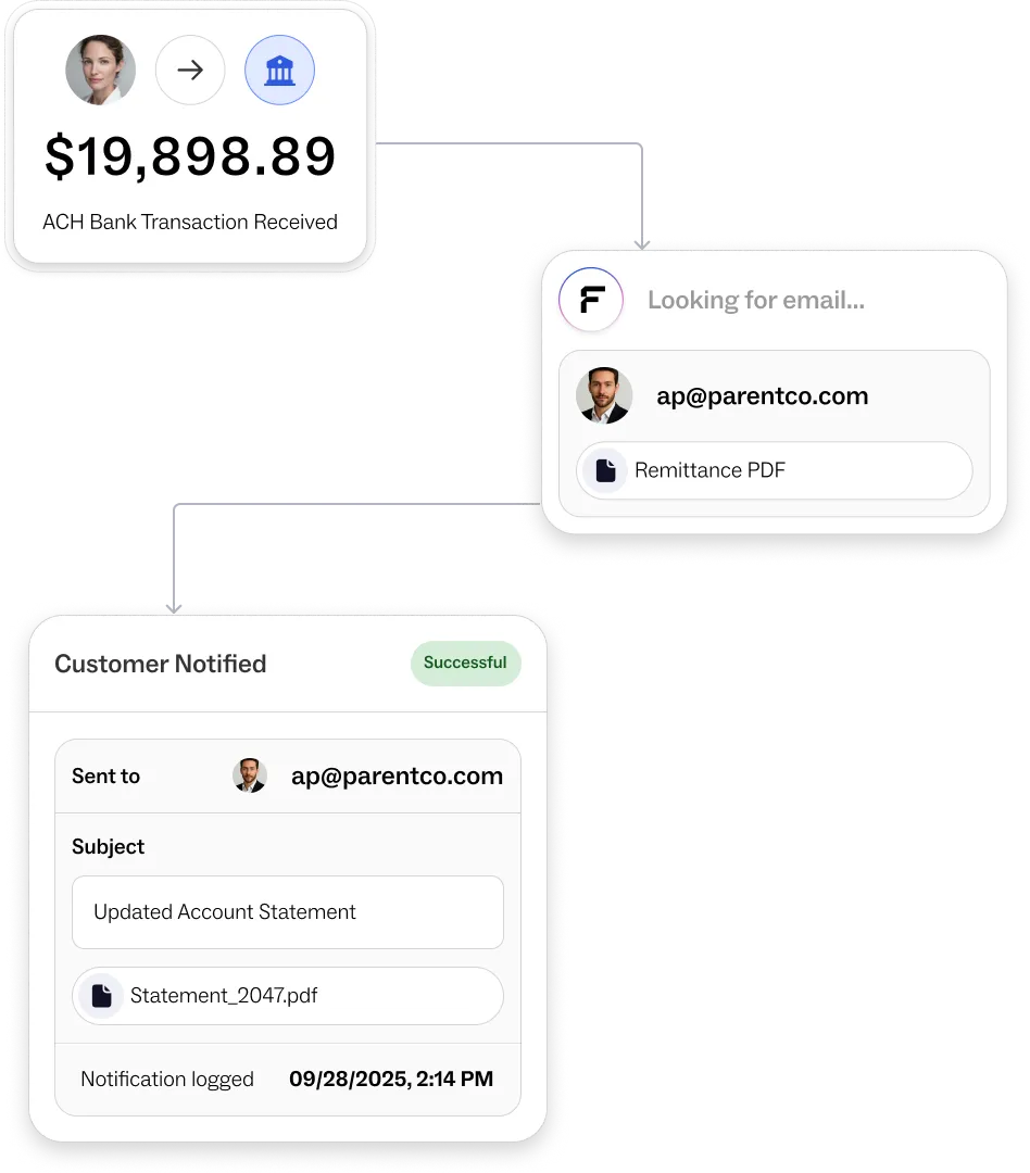 Instantly notify teams, such as collections, finance, or customer success, when a dispute is flagged so nothing is overlooked.